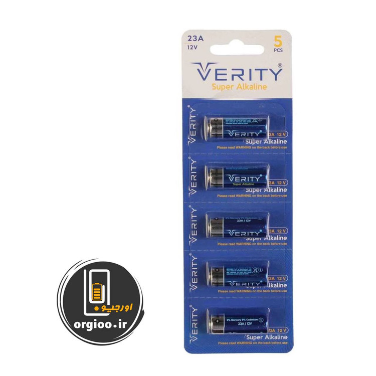 باتری ریموتی 23A وریتی دارای تکنولوژی سوپر آلکالاین بوده که طول عمر آن را بالاتر برده ، این باتری ها مناسب برای بعضی از ریموت ها بوده . ولتاژ این باتری ها 12 ولت میباشد . پک این باتری به صورتی ورقی و 5 عدد میباشد.
