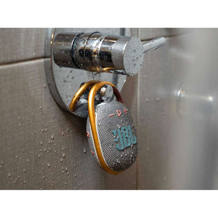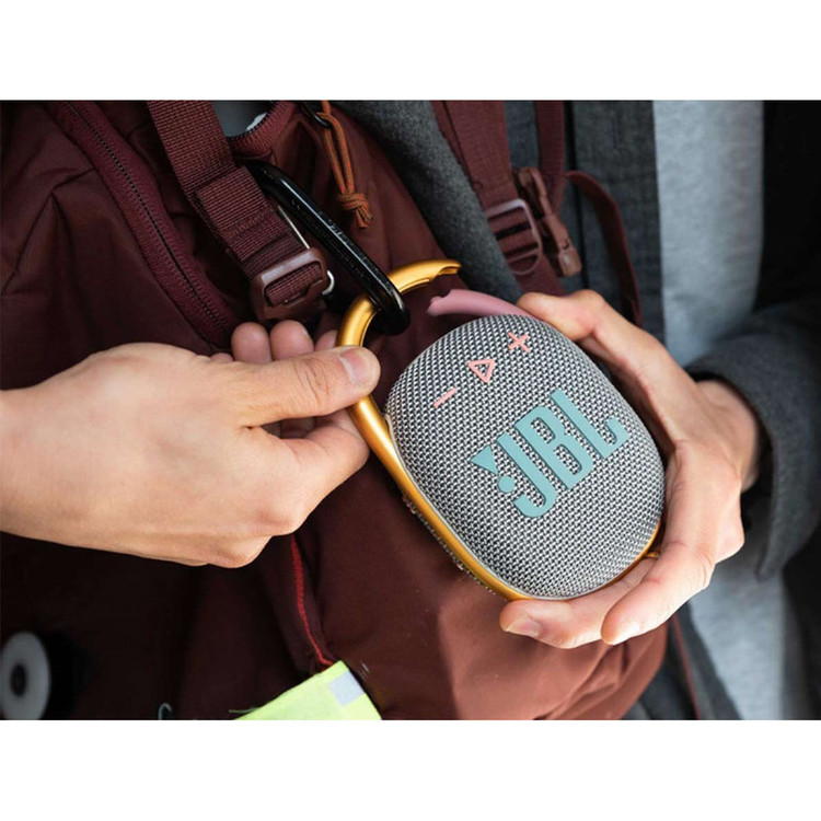 اگر به دنبال یک اسپیکر کوچک و سبک هستید که به راحتی آن را همه جا با خود به همراه داشته باشید، اسپیکر بلوتوثی جی بی ال مدل clip 4 یک انتخاب عالی برای شما است. این دستگاه با ابعاد 130x80x40 میلیمتر فضای بسیار کمی را اشغال میکند و همچون یک گوشی موبایل میتوانید آن را همیشه با خود نگه دارید. این دستگاه با استفاده از بلوتوث نسخه 5.1 و به صورت بیسیم به تلفن همراه، تبلت، لپ تاپ و سایر دستگاههای مدنظرتان، متصل میشود. اسپیکر مذکور از برند جی بی ال برای تامین نیروی مورد نیاز خود، از باتری استفاده میکند. باتری قدرتمند این دستگاه تنها در مدت زمان سه ساعت به طور کامل شارژ میشود. این باتری پس از شارژ کامل، تا بیش از 10 ساعت توانایی شارژدهی دارد که فقط در بهترین اسپیکرهای بازار شاهد چنین چیزی هستیم. توان خروجی کلی اسپیکر بلوتوثی جی بی ال مدل clip 4 برابر با 5 وات است. از دیگر ویژگیهای این اسپیکر بلوتوثی، میتوان به مقاومت آن در برابر آب اشاره کرد. در کنار این محصول، یک عدد دفترچه راهنما و یک کابل Type-C برای شارژ مجدد اسپیکر قرار دارد.