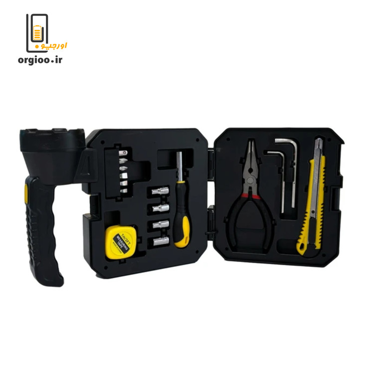 جعبه ابزار شامل انبردست دم باریک، کاتر، متر، آچار شش گوش، پیچ گوشتی ، آچار آلن